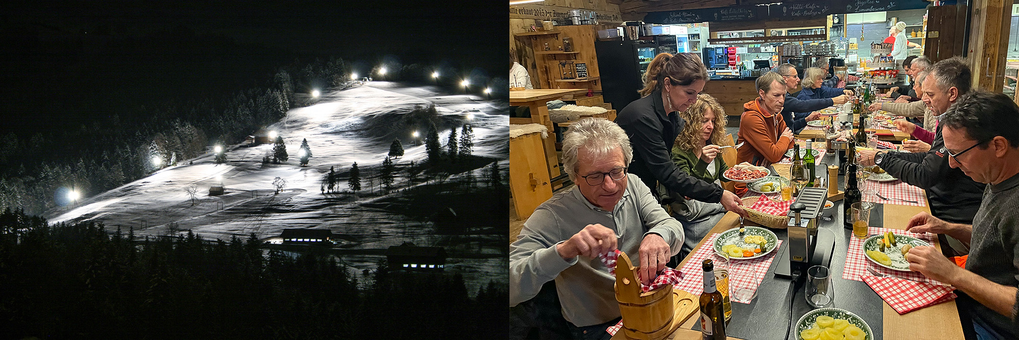 Der Fondue-/Racletteplausch wird auch durchgeführt, wenn das Nachtskifahren wegen Schneemangels nicht möglich ist. Obwohl wir natürlich auf Schnee hoffen, können wir das Alternativprogramm «Eisstockschiessen» nach letztjährigen Erfahrungen sehr empfehlen.