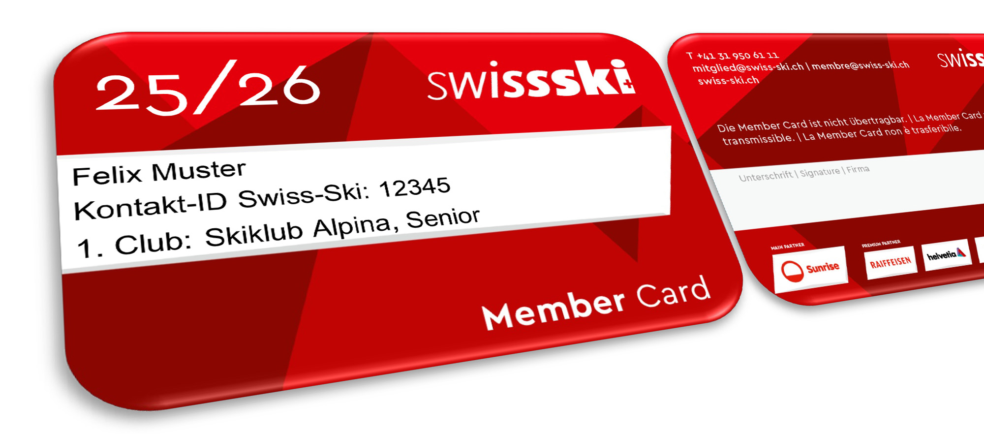 ACHTUNG: Für jedes Mitglied (auch Kinder und Jugendliche) wird eine separate E-Mail-Adresse benötigt. Es ist nicht möglich, die gleiche E-Mail-Adresse zweimal zu verwenden. Wer ein Swiss-Ski-Profil und damit den Zugang zu seiner Member Card aktivieren möchte, muss bei uns im Skiklub eine E-Mail-Adresse hinterlegt haben. In speziellen Fällen besteht die Möglichkeit, dass wir eine Member Card als PDF zustellen können.